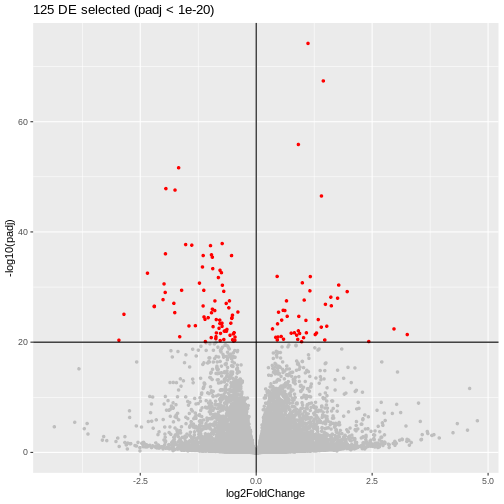 ggtitle(paste0(length(genes_DE), " DE selected (padj < ", padj_thr, ")"))