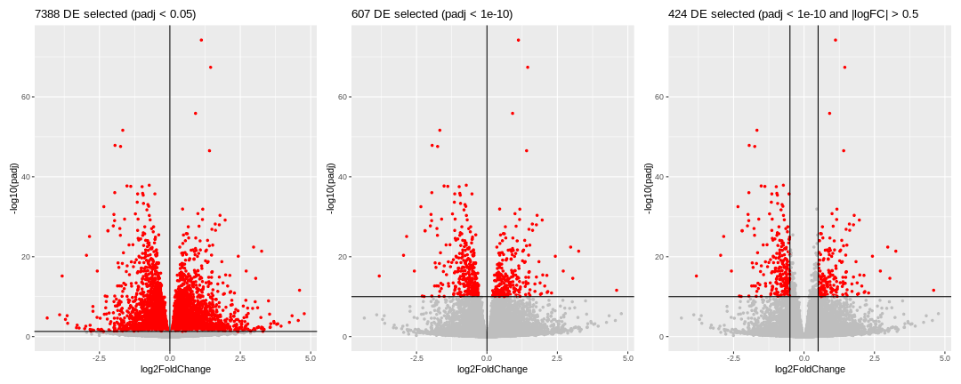 Whatever thresholds are used, the idea here is to start from a selection of genes that we will consider as our DE genes. The selection is a choice the user has to make.