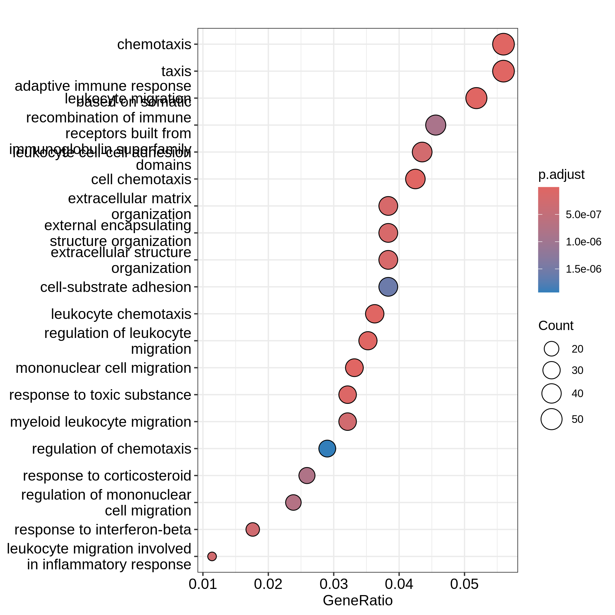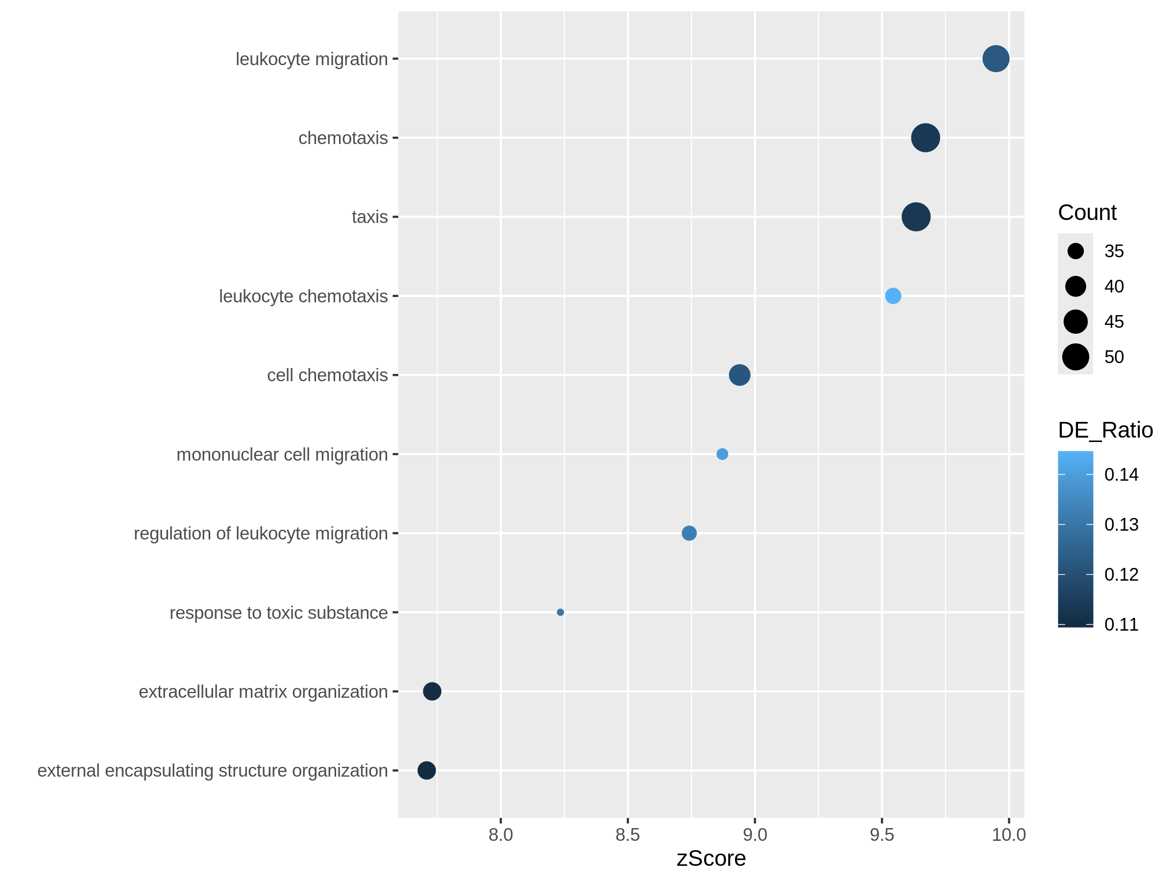 Test a different threshold to define the group of ‘DE genes’ and check if, in the cases above, this has and effect on the GO terms of interest.