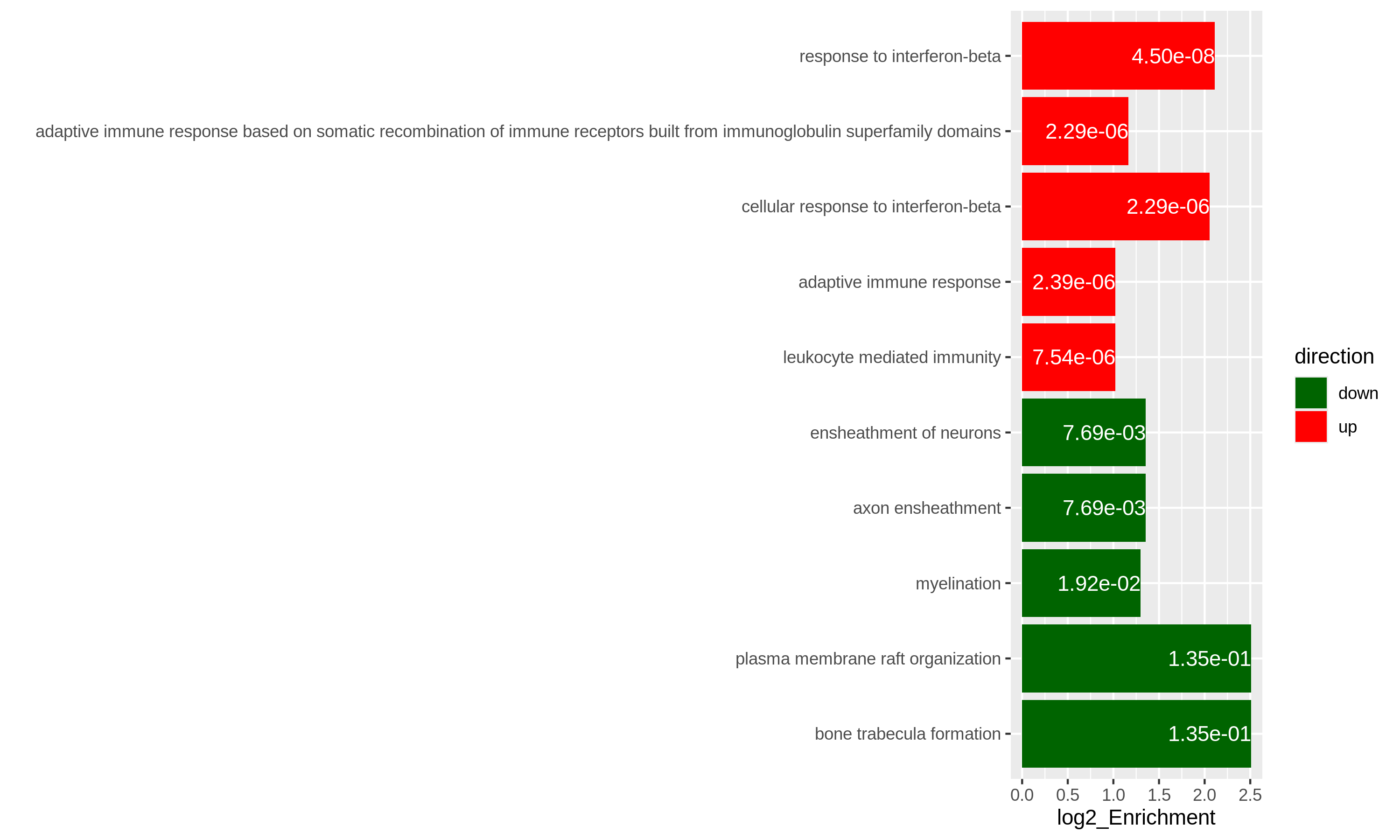 Here, we will re-use the clusterProfiler package to run a GSEA this time, using GO terms from the Biological Process.