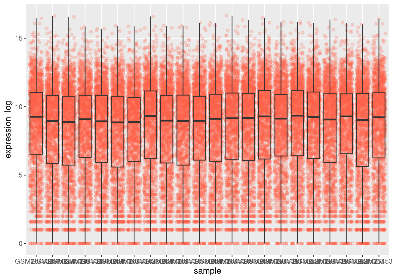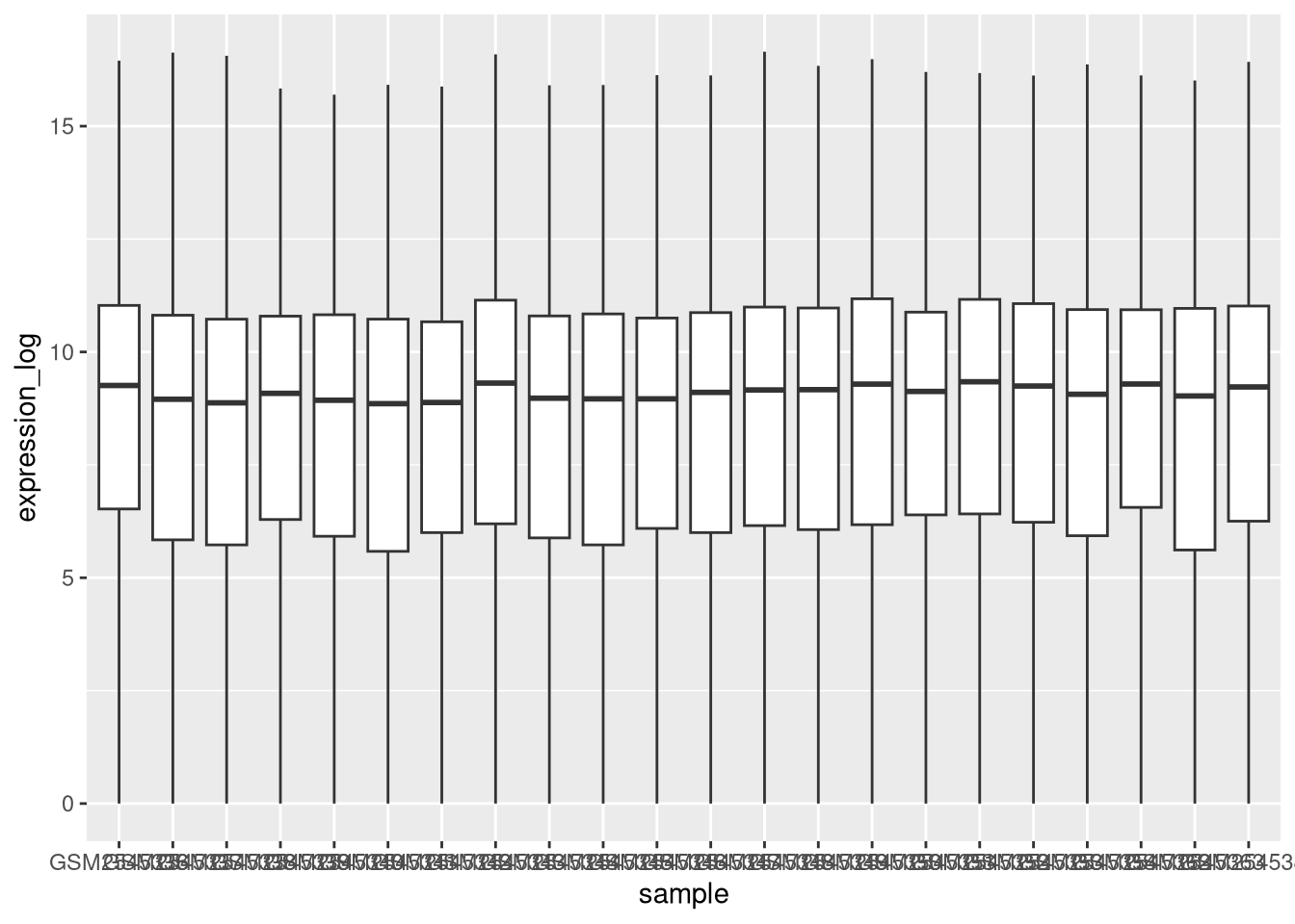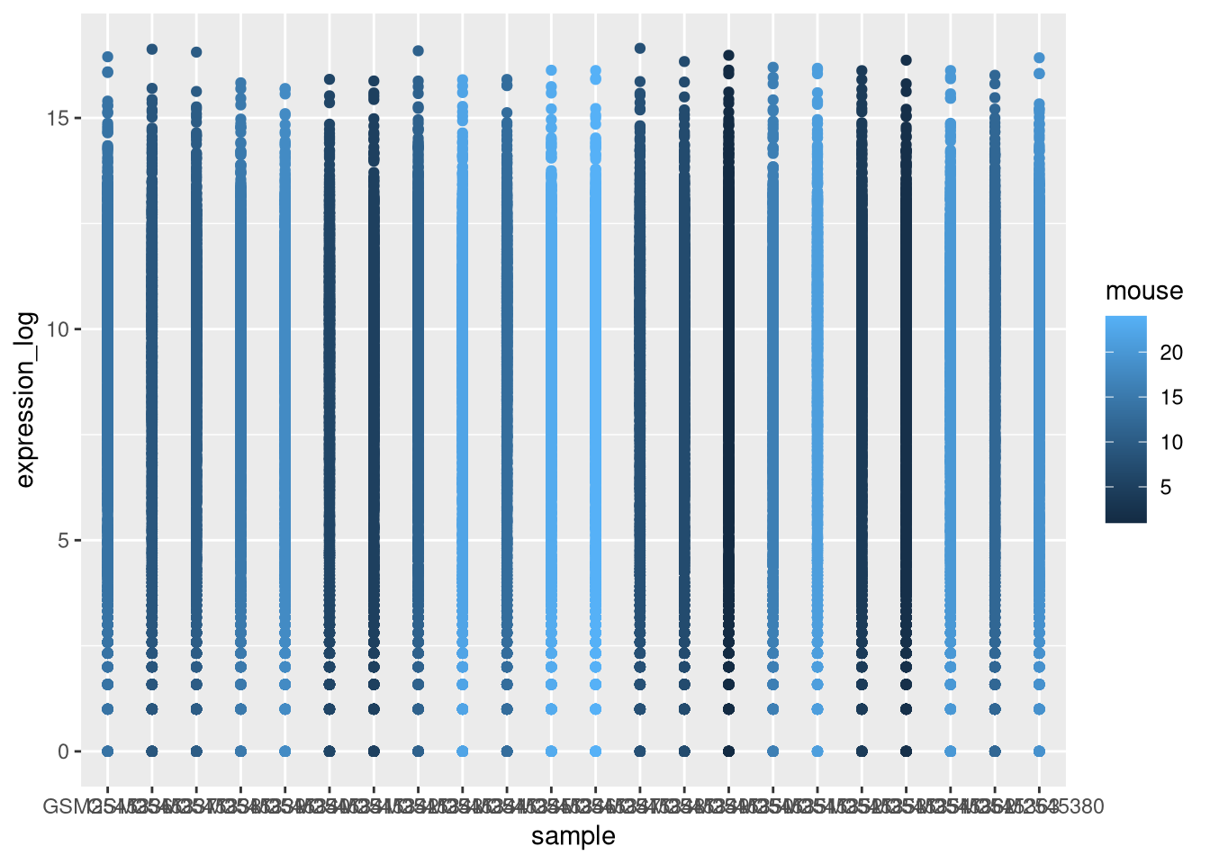 From now on we will work on the log-transformed expression values.