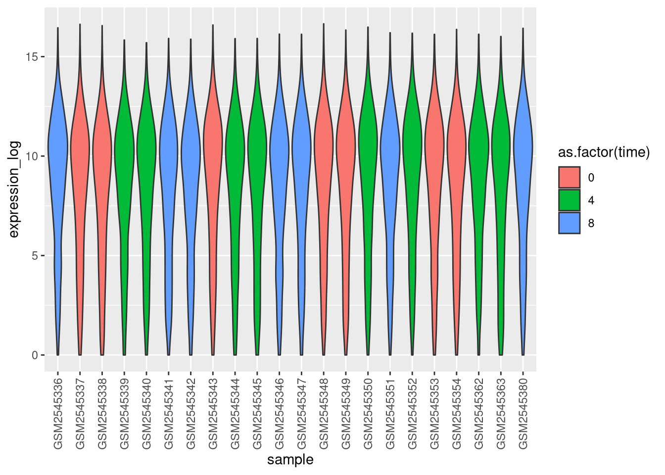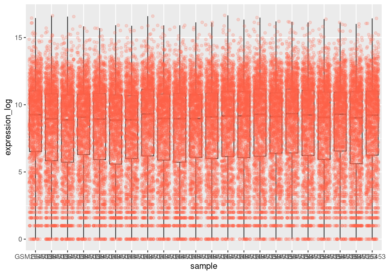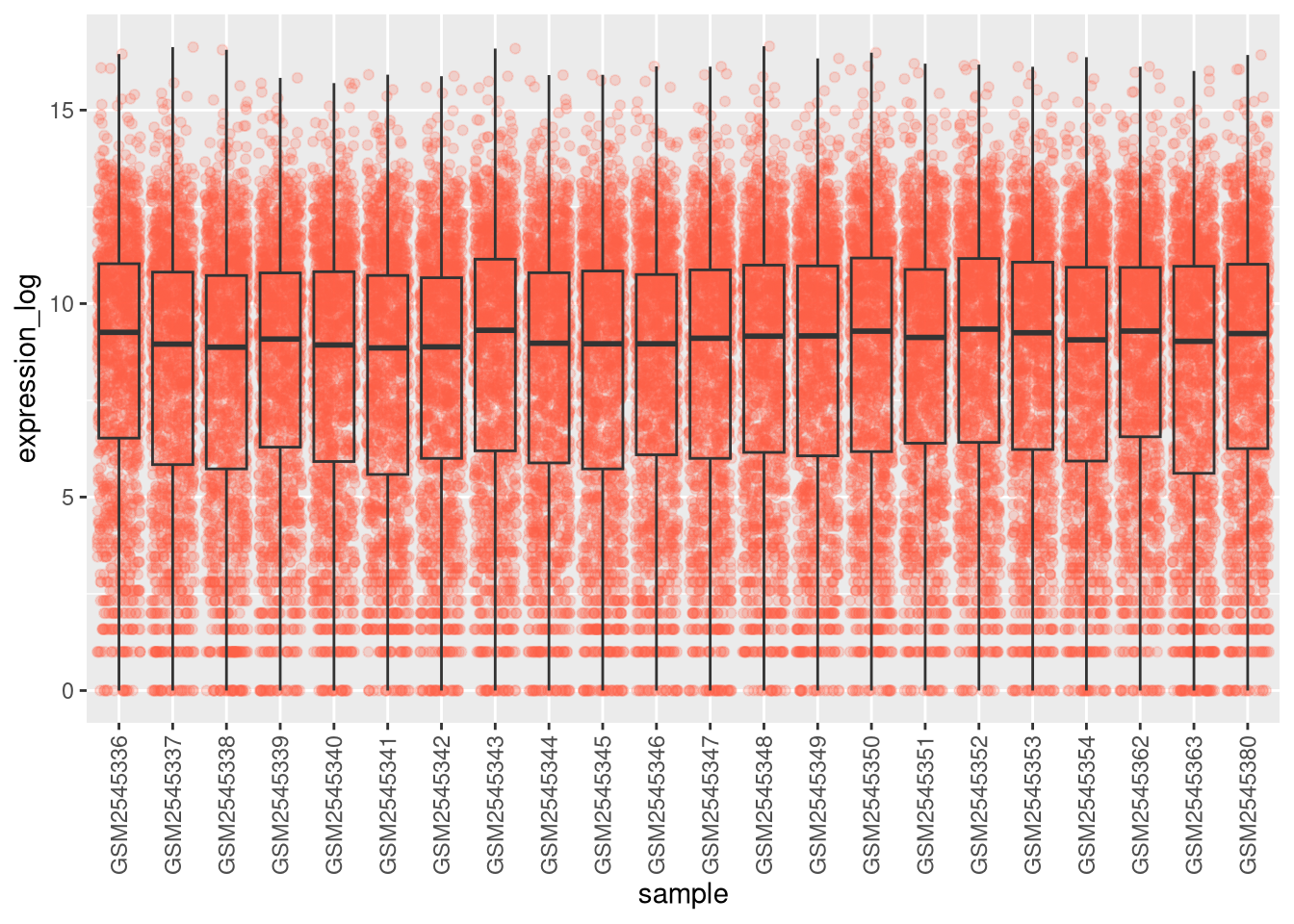 From now on we will work on the log-transformed expression values.