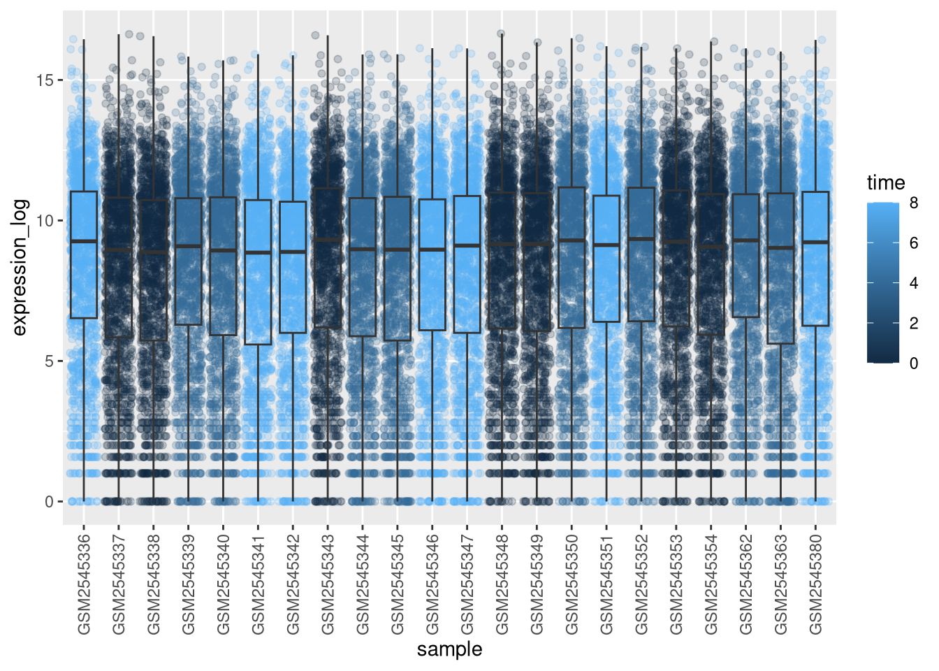 exp_boxplot_sex <- ggplot(rna, aes(y=expression_log, x = as.factor(time),