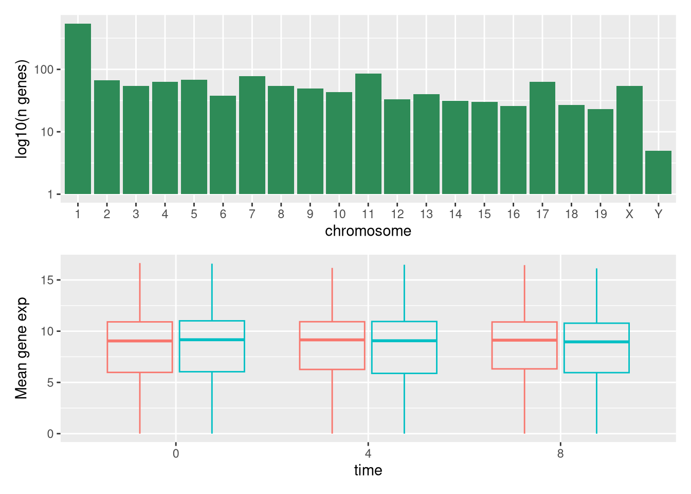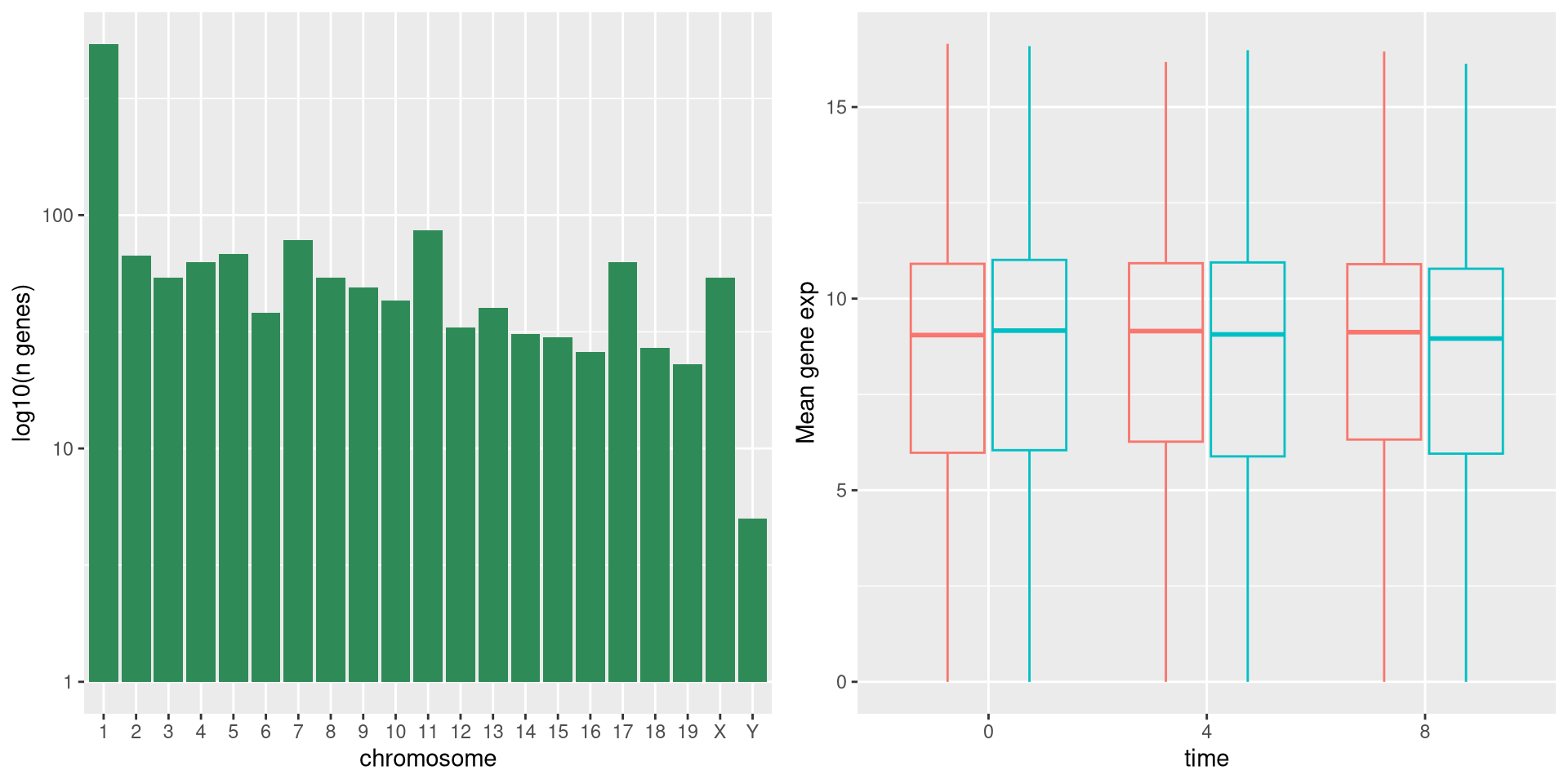 labs(y = "log10(n genes)", x = "chromosome") +