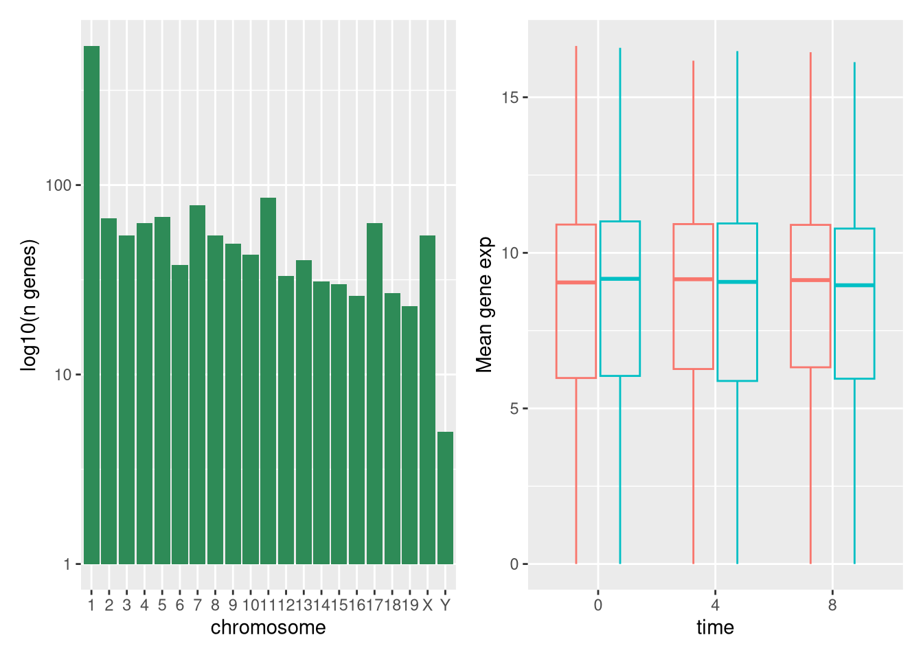 combo_plot <- grid.arrange(count_gene_chromosome, exp_boxplot_sex,